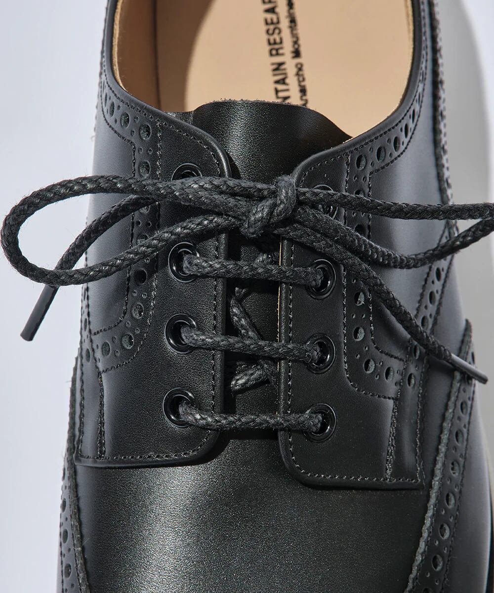 グッドイヤーウェルト製法で仕立てたウイングチップシューズに、ポップフレーヴァーを加えた一足。外羽根のオックスフォードスタイルとクラシカルなアッパーに、あえて「少しハミ出た」ような白いEVA素材のミッドソールを組み合わせることで、伝統と遊び心を融合させました。正統派の国内工場で丁寧に作られた、個性際立つ仕上がりとなっています。