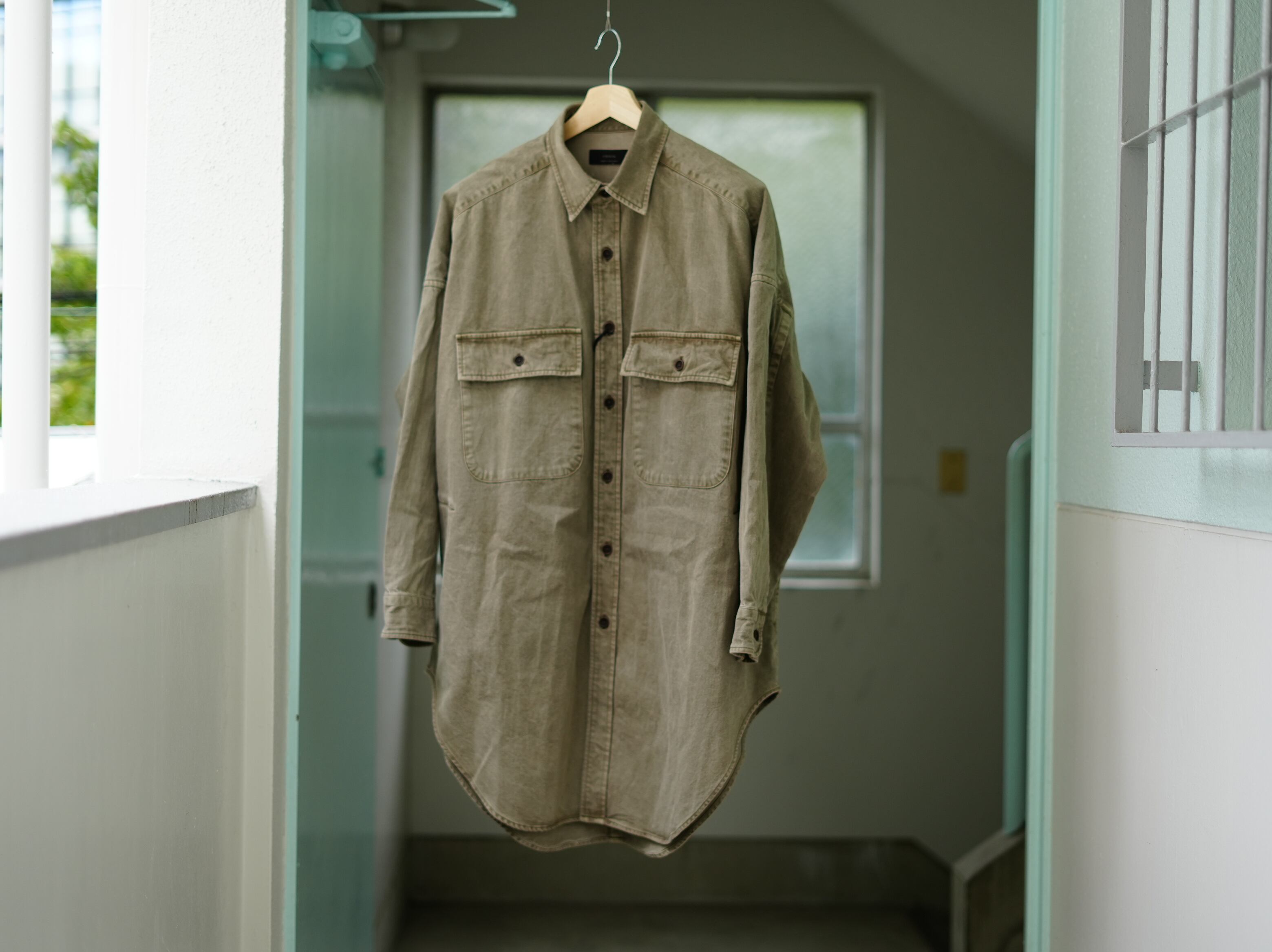 素材にはオリーブとカーキの中間のような、奥行きある色味が特徴の特殊デニムを採用。