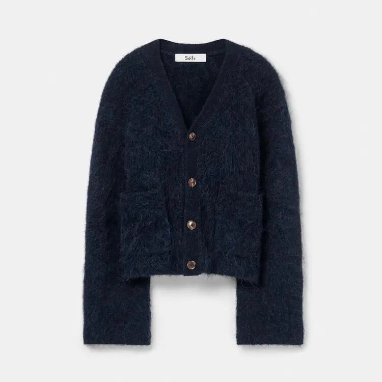 柔らかなアルパカ糸で編み立てた〈Lee Cardigan〉。