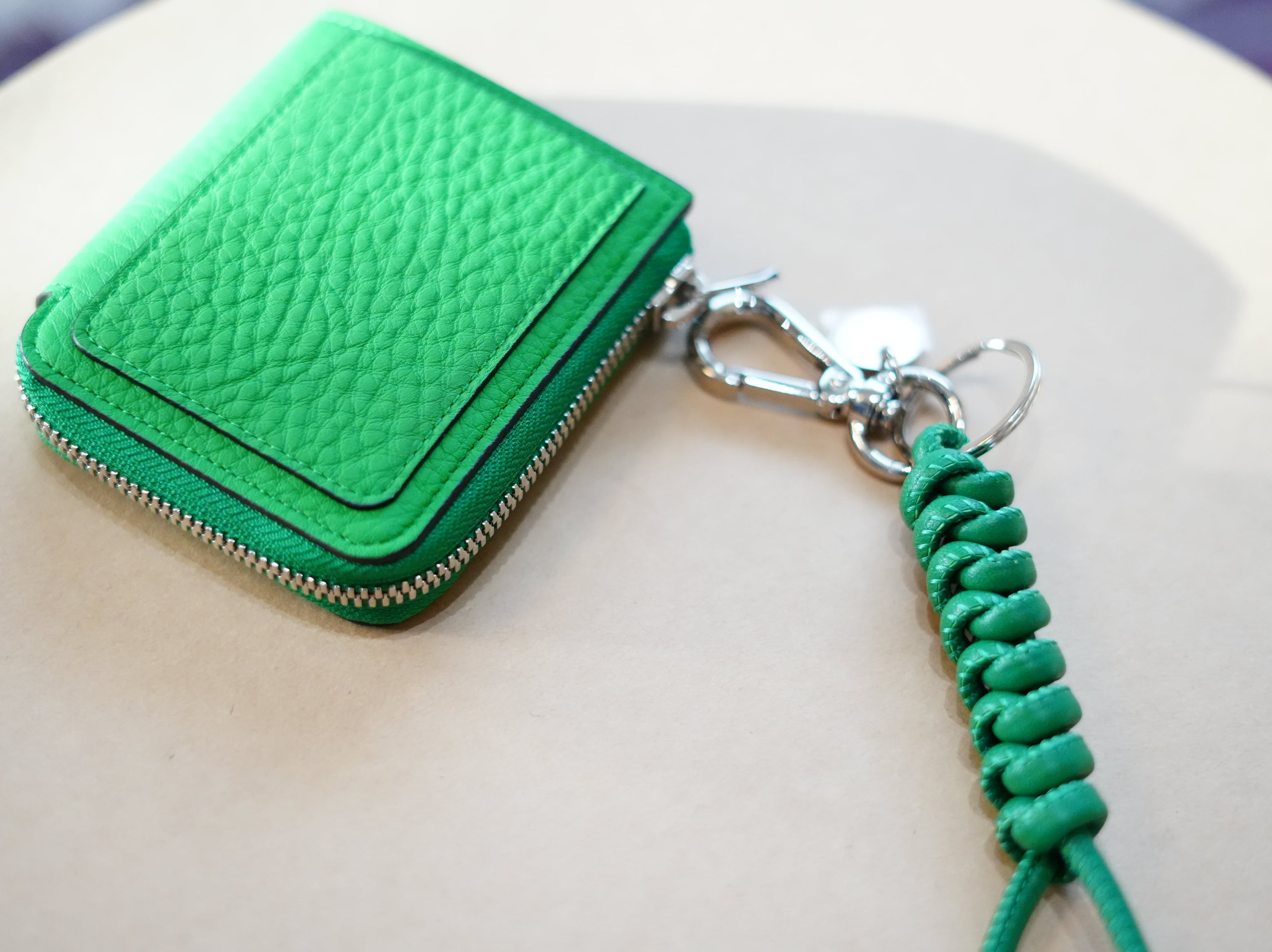バッグのハンドルやベルトループに通すだけで、装いにさりげない個性とニュアンスを添えてくれるこのアイテムは、キーリングとしてはもちろん、アクセサリー感覚でも楽しめるレザー小物。