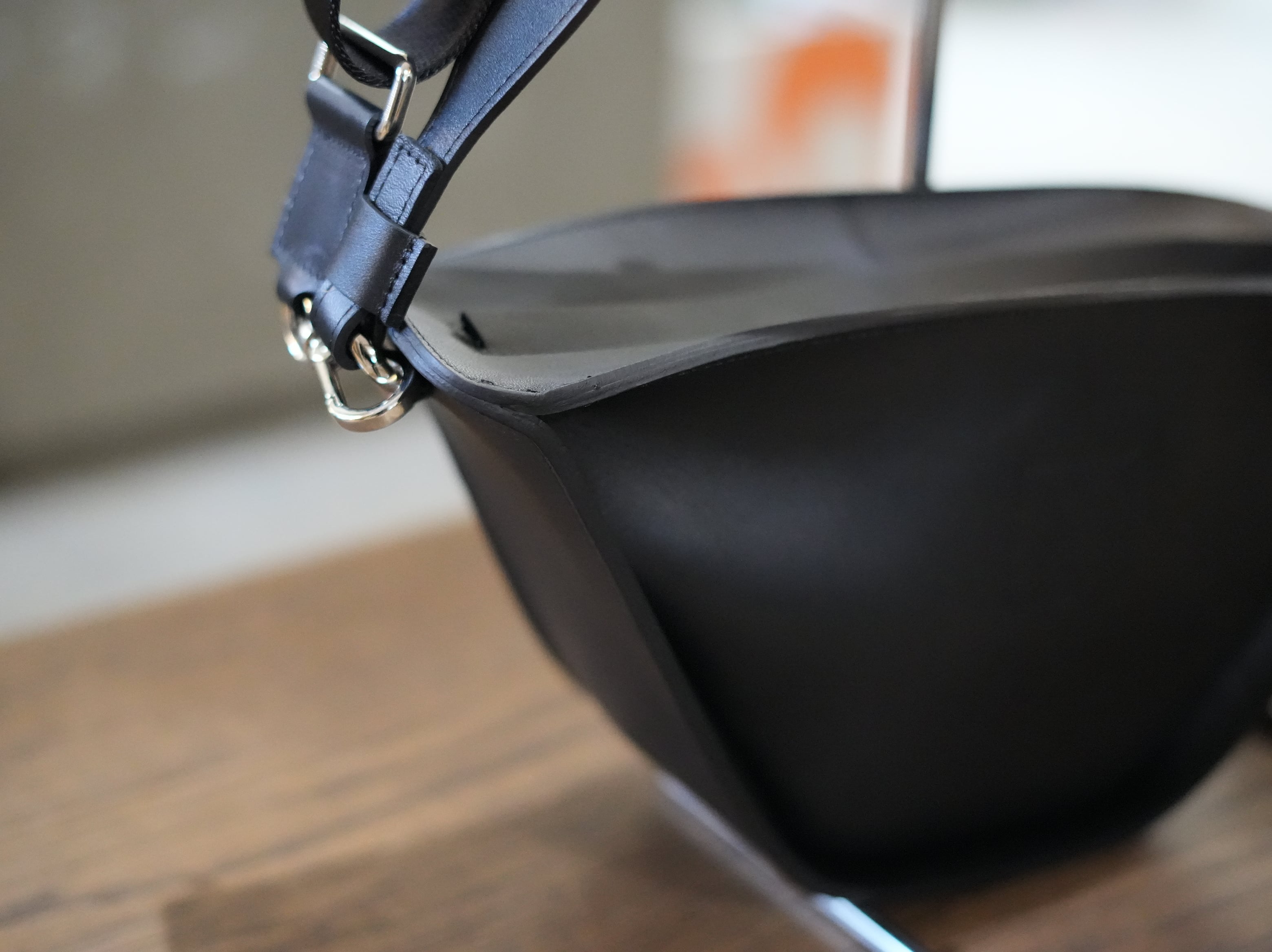本体は、無駄のないパターンメイキングにより、まるで一枚のレザーから削り出したような滑らかで構築的なシルエットを実現。裏地にまでレザーを贅沢に使用することで、使い込むほどに革全体がもっちりとした質感へ育ち、素材本来の魅力をダイレクトに味わえる仕上がりです。