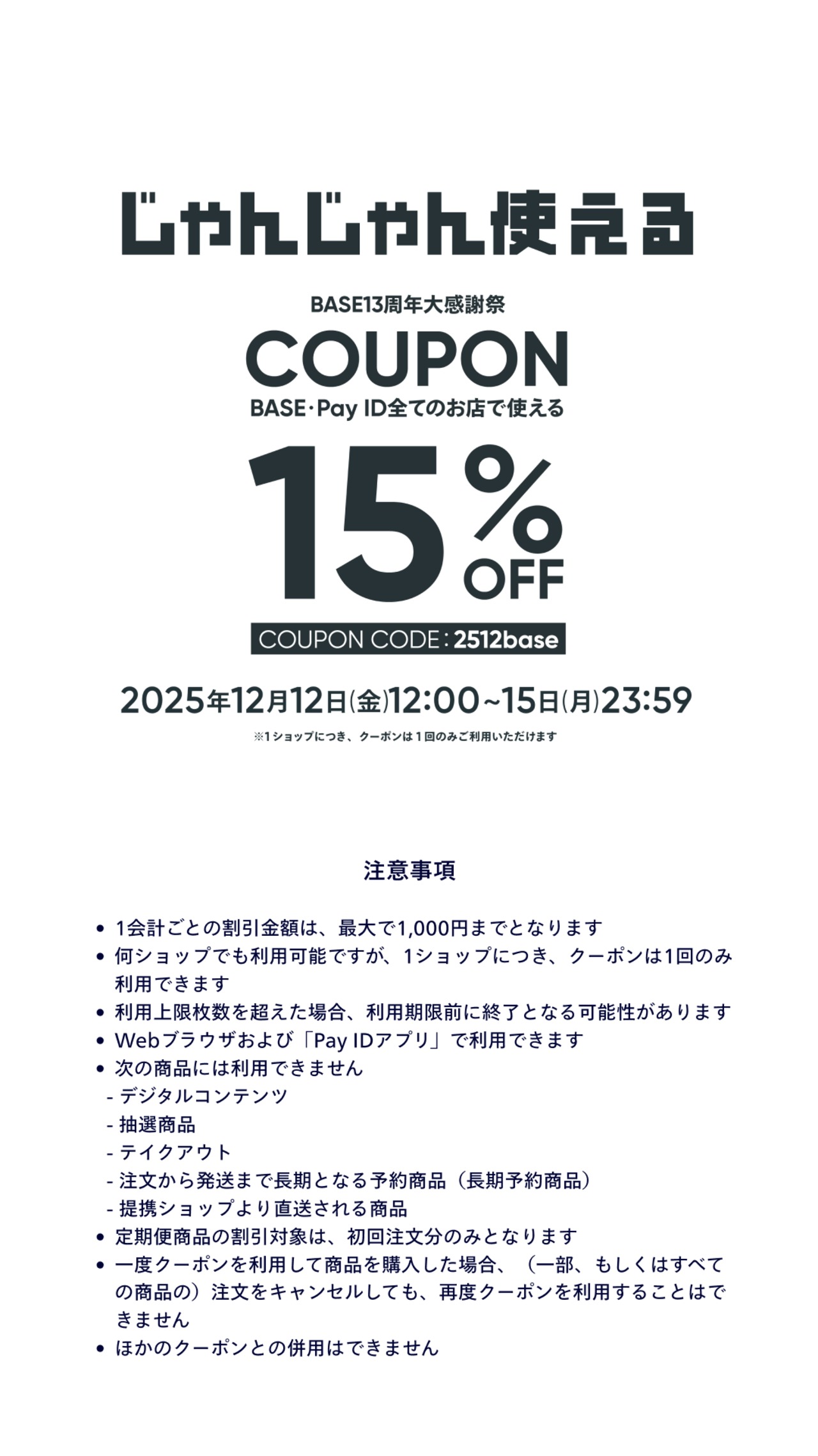 BASE13周年大感謝祭クーポン