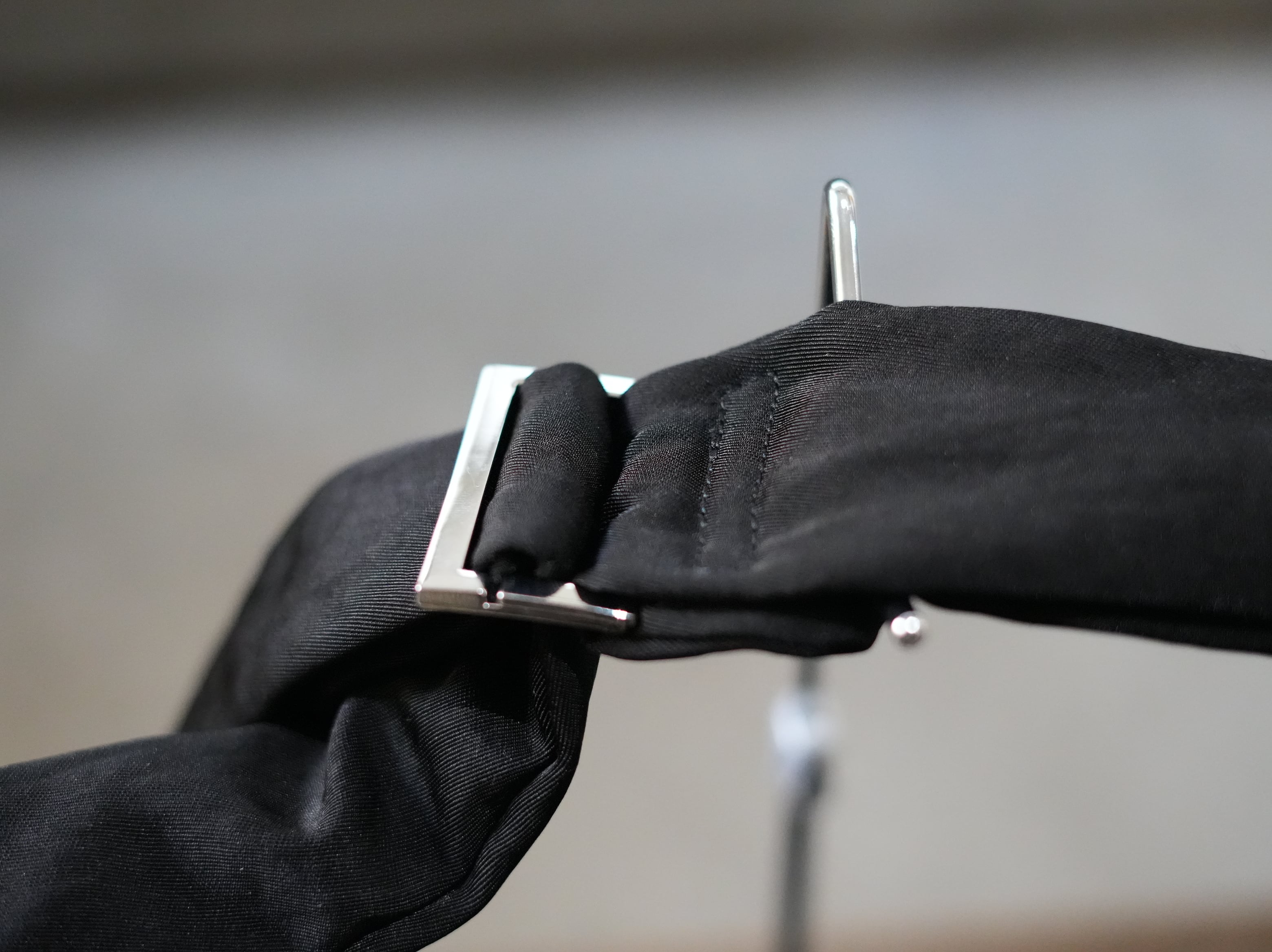 持ち手が下にたわむことで、美しいシルエットを実現しています。アジャスターリングで持ち手の長さを調整する事ができ、斜め掛けにも肩掛けにも対応しています。