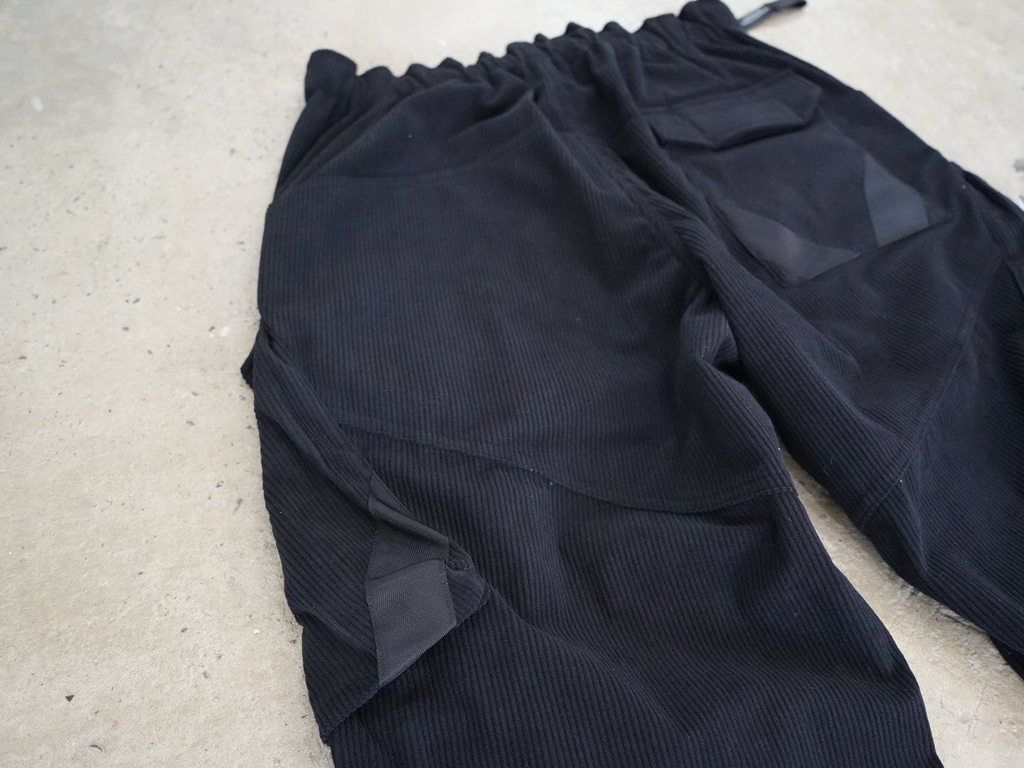 クライミングパンツ的な考え方が落とし込まれた9分丈のベーシックパンツは、今シーズンのフィーチャー素材のひとつであるポリエステル・コーデュロイ。柔らかで軽やかな質感はコットンコーデュロイでは味わえないコンフィーな着心地。MTR3955”MT JKT.”とのセットアップをイメージするダブル裾はどことなくドレッシーでトラウザー的。