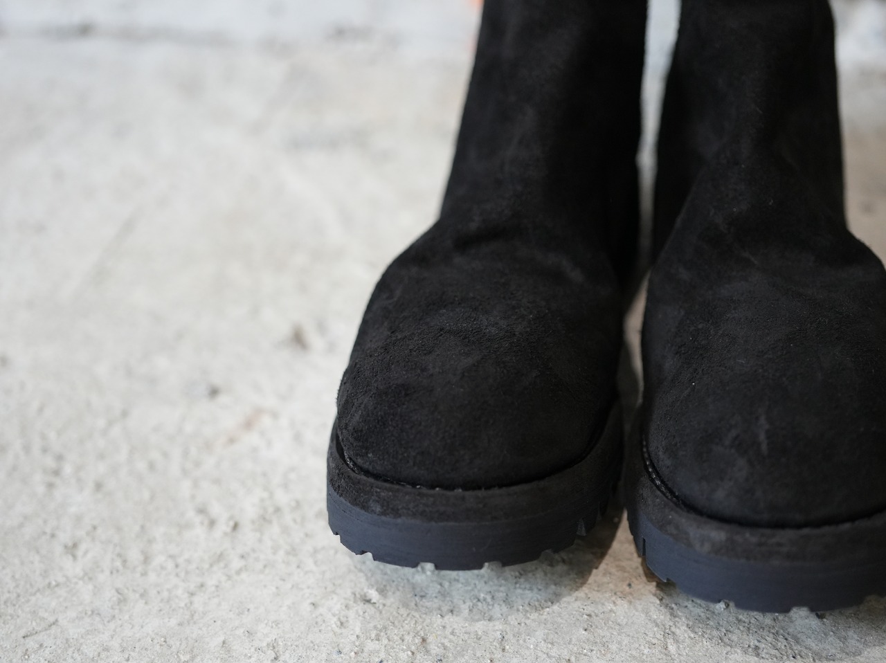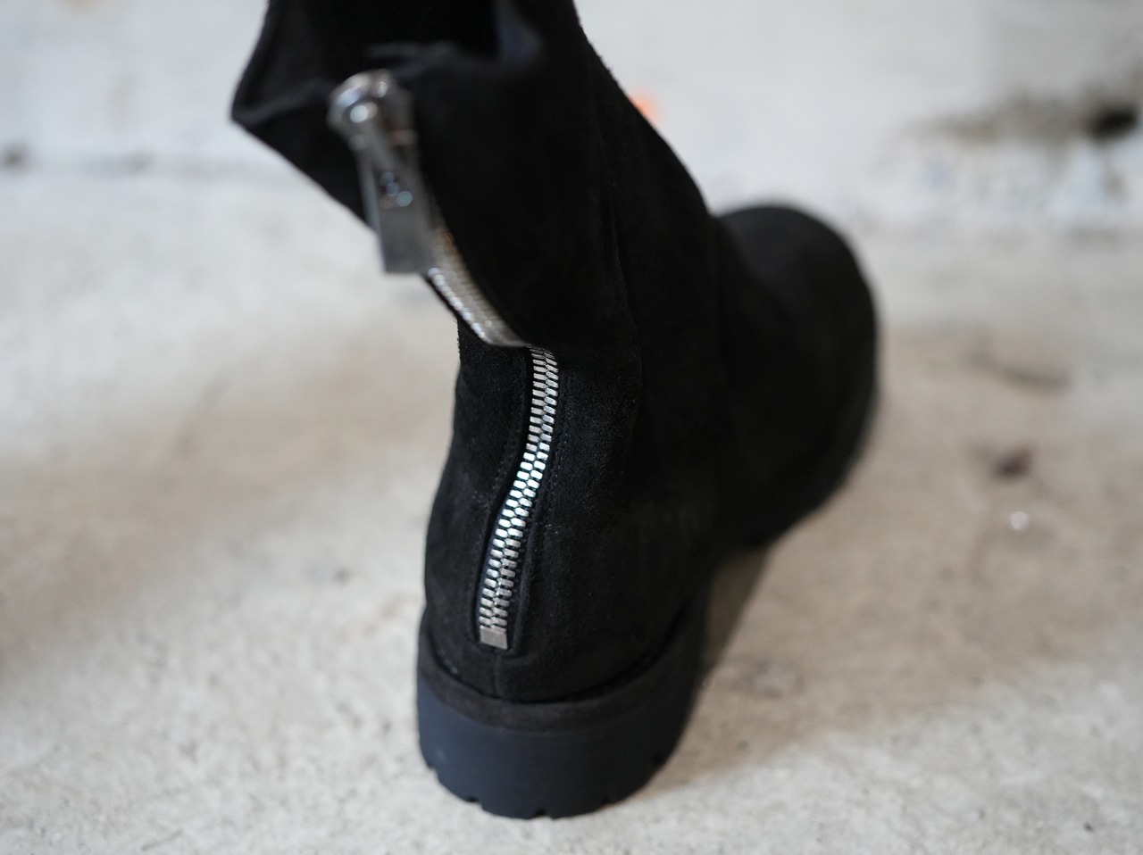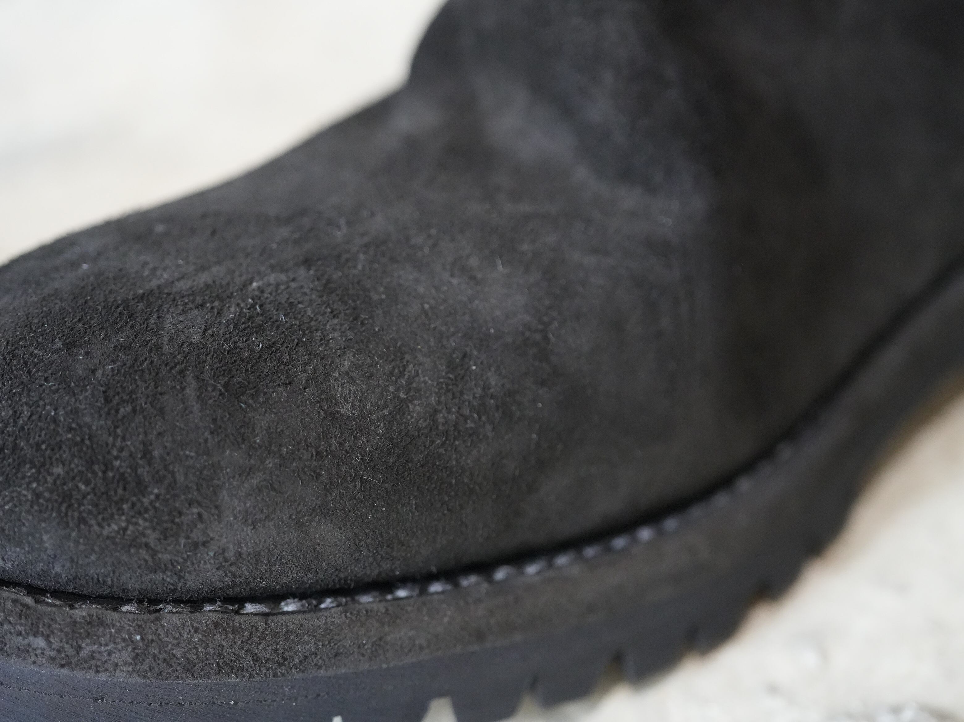 製品として形成した後に染めるタンブラーダイが特徴の一つ。ジップやレザーソールも染まることで全体に独特な風合いが生まれる。