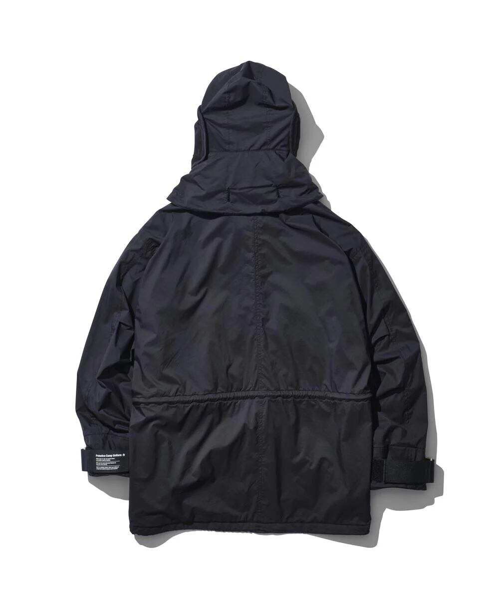 可変ギミックを盛り込んだ脱着フードが見どころのショート丈モッズコートは、過去数シーズンに渡り意欲的な採用を続けているモダンテクニカル・超軽量保温素材OCTAを裏地に装備。アウターシェルは撥水加工を施したリップストップナイロン。フード両サイドのフリップオープン式フェイスマスクはパタパタと動くウサギさんの耳のよう(ゆえにラビット!?) 。